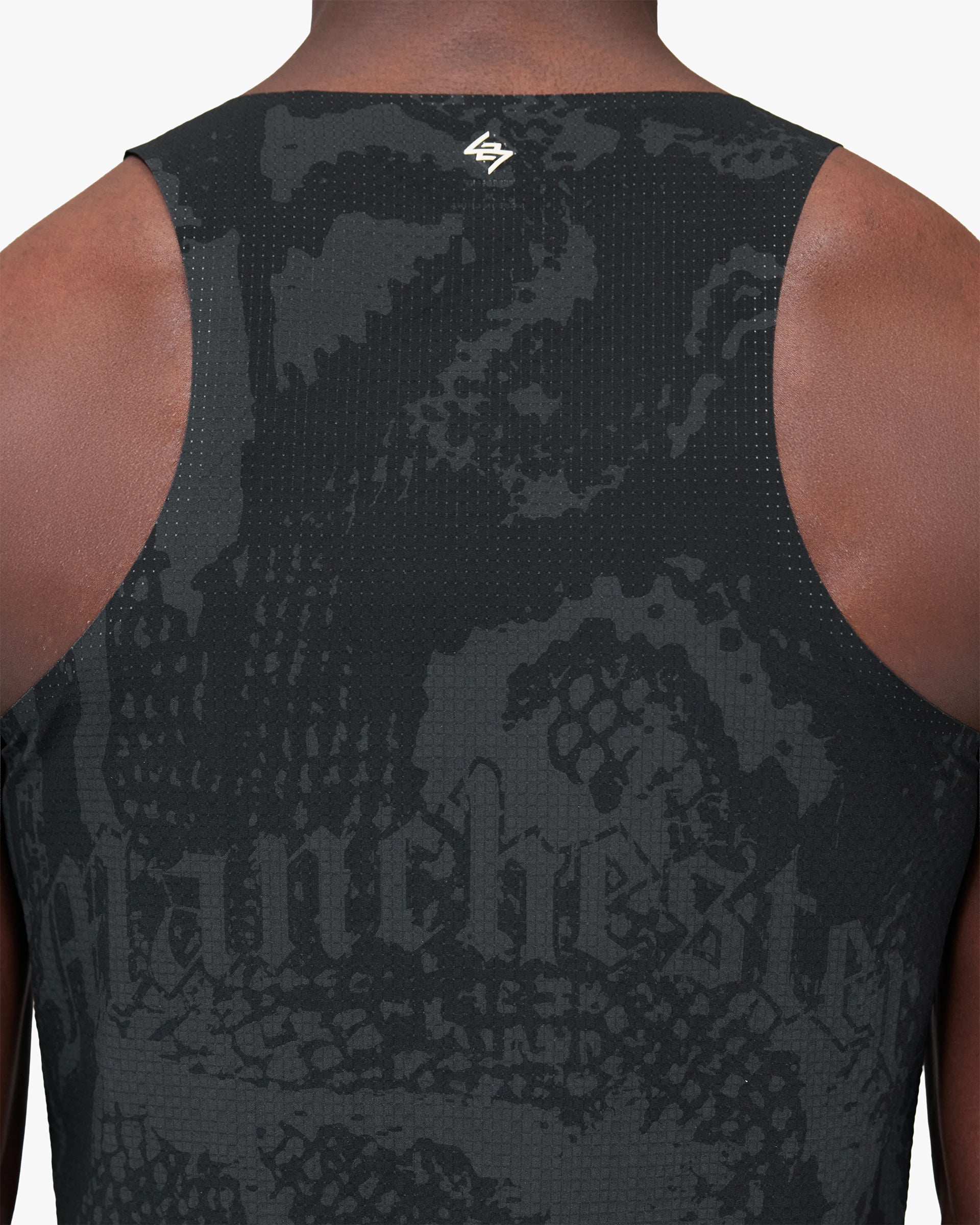 Introducing the 247 Manchester Singlet in Aged Black. Designed for race day performance, this lightweight singlet features a racerback silhouette for unrestricted arm movement and a tonal printed finish across the full construction. A mesh back panel enhances ventilation during high-intensity efforts, while bonded seams deliver a smooth, chafe-free fit from the start line to the finish.