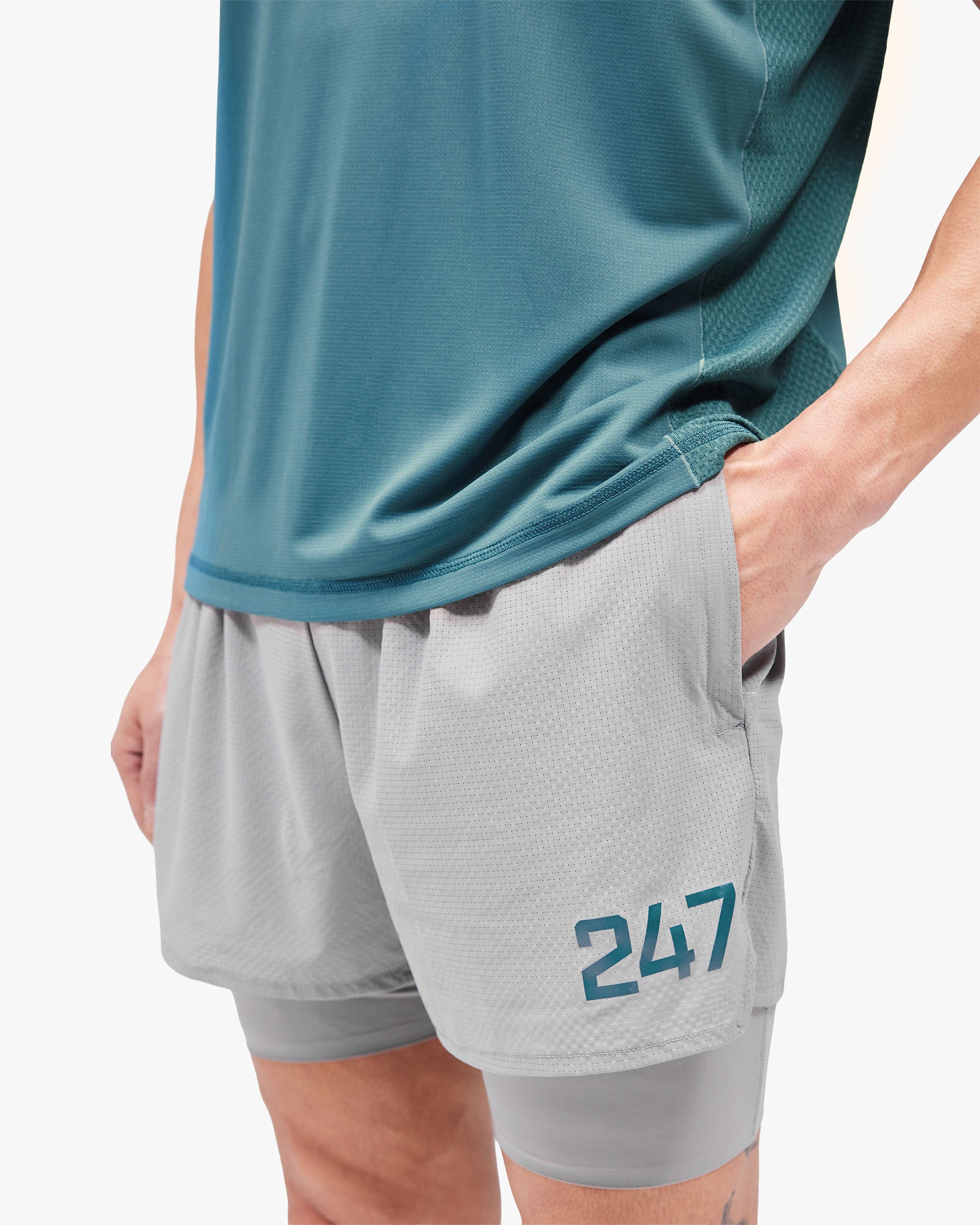 Introducing the 247 Trail Short. Engineered for hybrid training, built for athletes who train without compromise. A 2-in-1 design with 4-way stretch for unrestricted movement, cut from a quick dry fabric. Finished with a branded 247 elasticated waistband with drawcord, zip pockets to the hips with branded 247 zip heads, a dual-function back pocket with zip opening for secure storage and a loop system for stashing a towel or tee whilst training. Bonded phone pocket to the inner liner and side split detail for ease of movement. 3-inch outer inseam, 5-inch inner inseam.