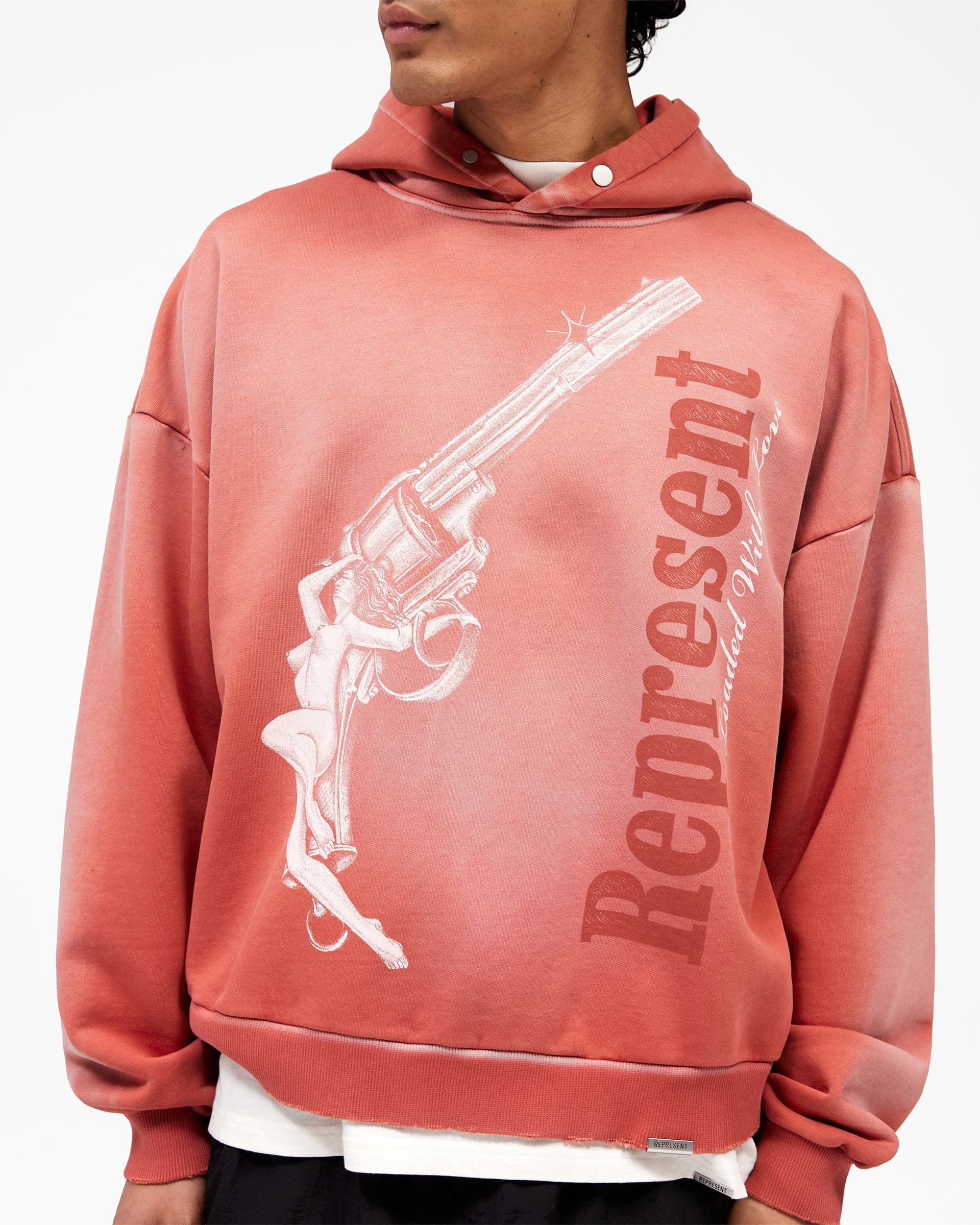 Introducing the Loaded With Love Hoodie in Withered Rose, a boxy essential built for longevity and understated presence. Crafted from substantial 485GSM cotton, this hoodie arrives with signature Represent detailing: a metal bar sits at the hem, a front graphic marks the chest, and minimal distressing softens the cuff and hem. The marriage of comfort and considered design makes this a foundational piece for the season.