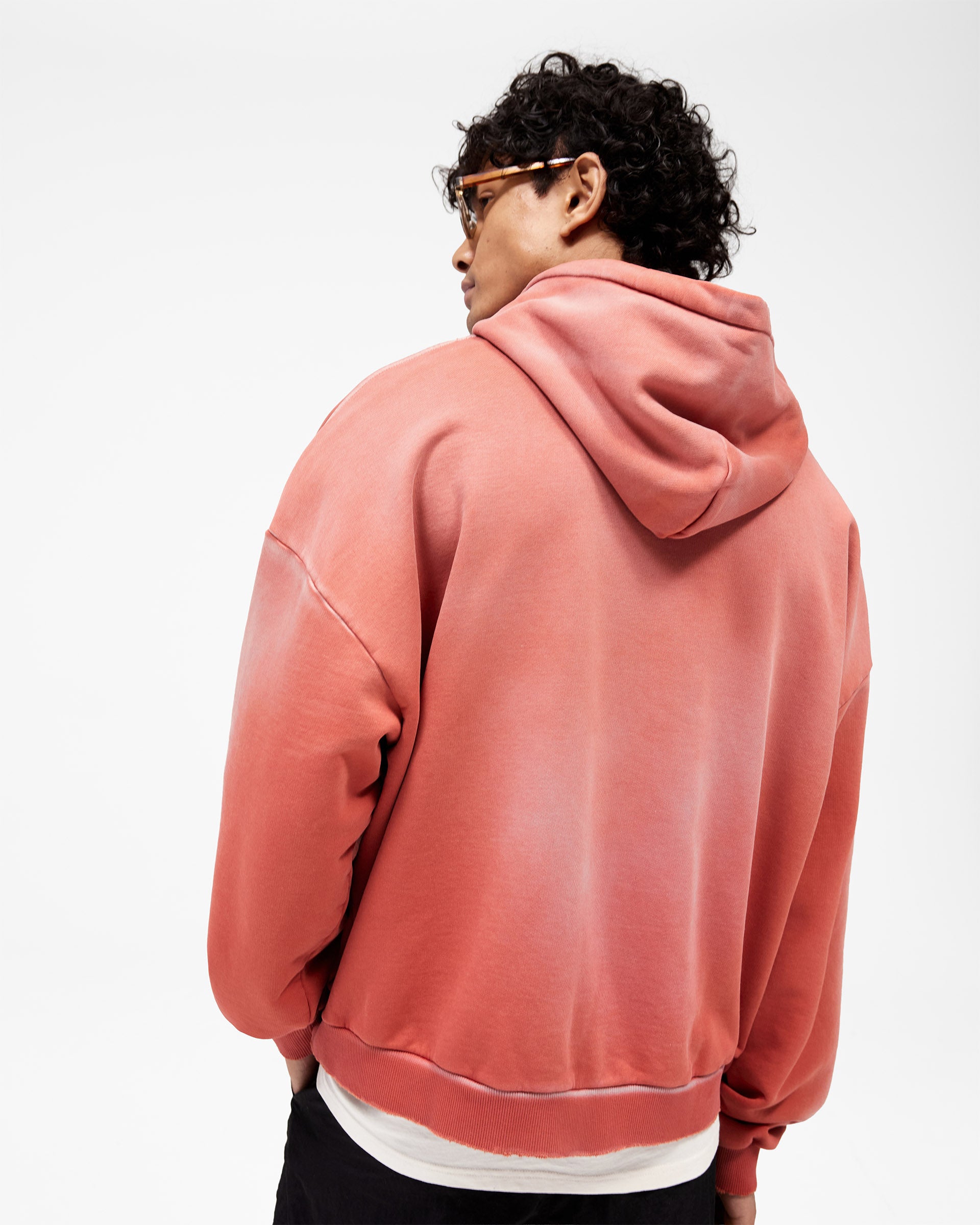 Fabric naturally fades. Distressed garments may show further wear.
