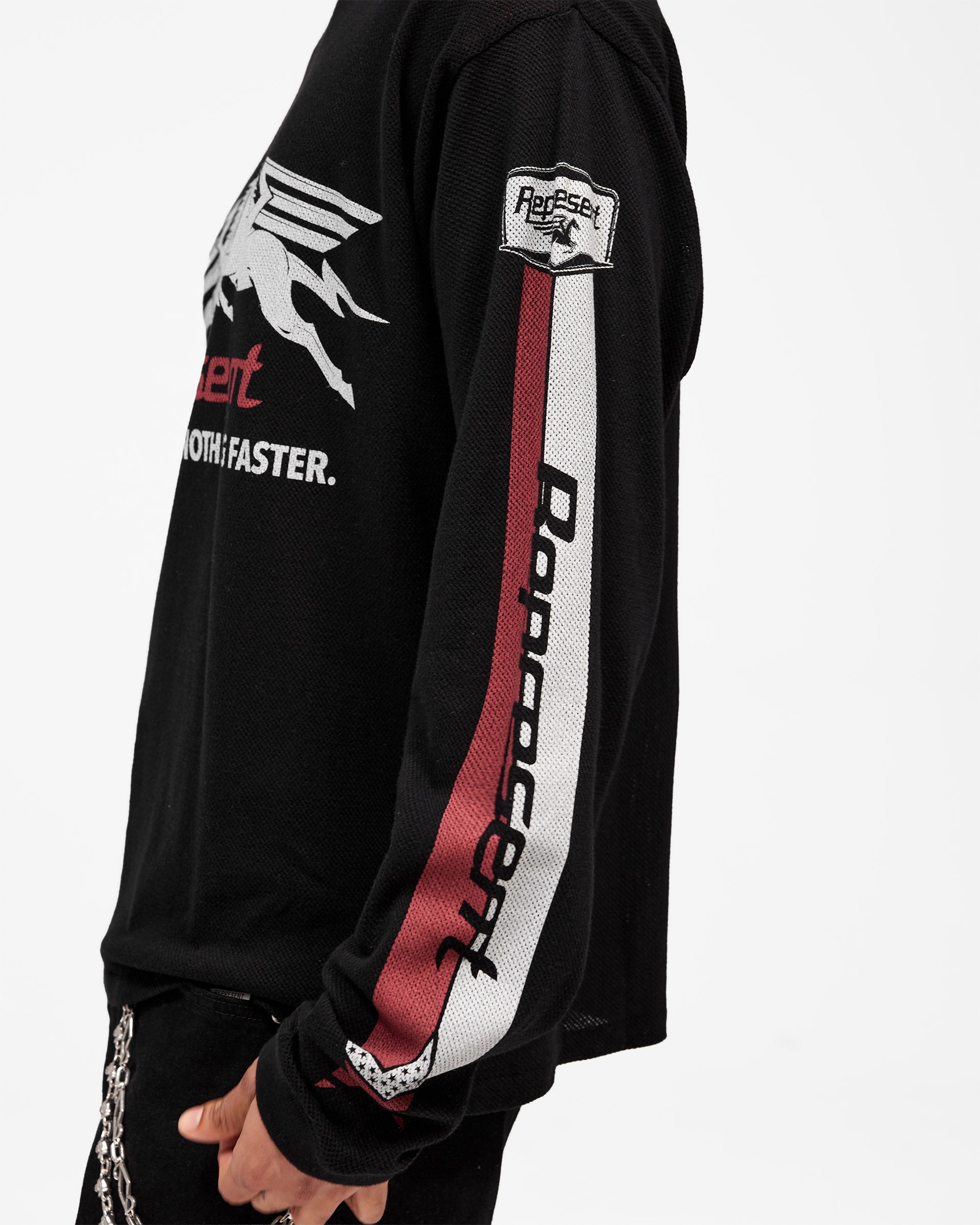 Mesh Pegasus Long Sleeve T-Shirt - Jet Black