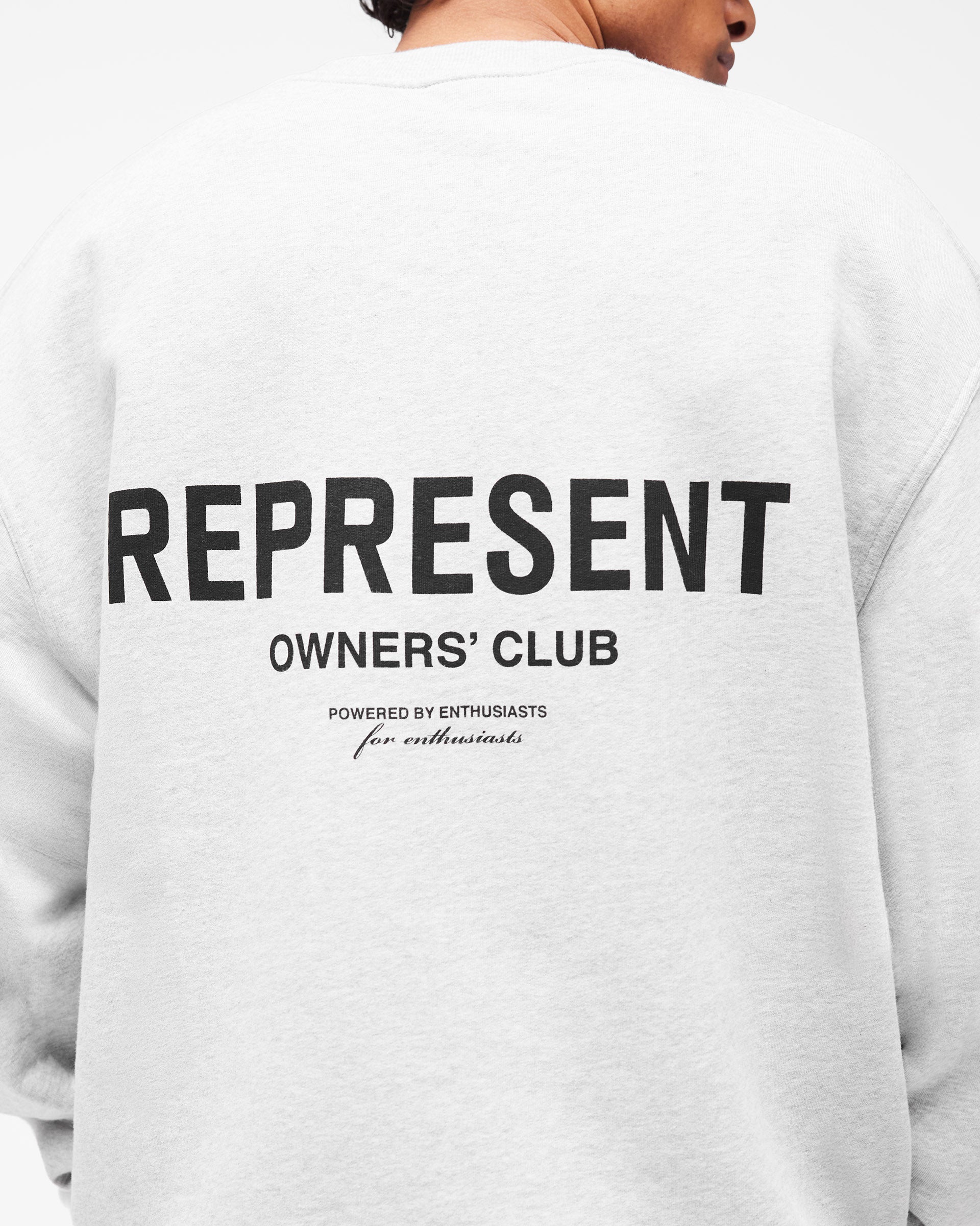 Introducing the Represent Owners Club Sweater in Ash Grey. Our most recognised collection, born in Manchester and worn worldwide. Cut from 480gsm heavyweight loopback cotton, piece dyed for depth of colour and pre-shrunk for a lived-in feel from the first wear. Owners Club branding sits to the chest and back, finished with a ribbed crewneck collar, ribbed trims and our signature oversized fit that falls wide and square.