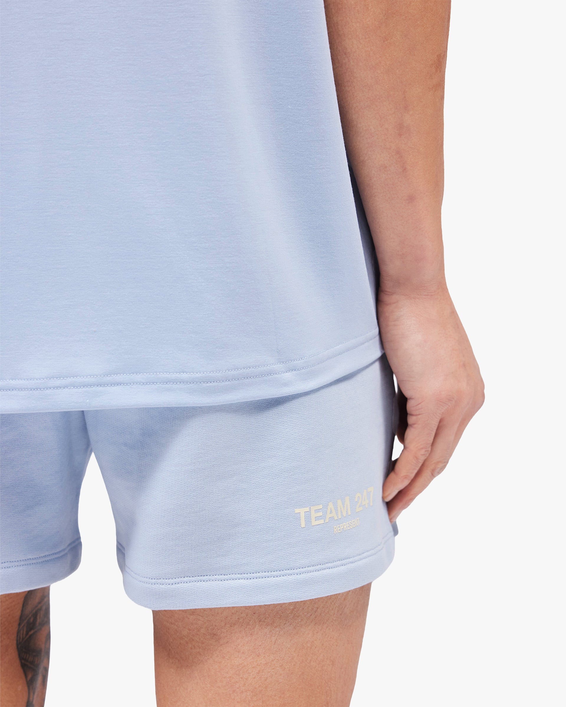 Introducing the Team 247 Jersey Short in Glacier for SS26. A core comfort piece from the 247 DNA collection, these jersey shorts are designed for downtime, warm-ups and everyday movement. Constructed from a soft cotton blend jersey, they deliver a relaxed feel with natural stretch and breathability. An elasticated waistband provides a secure yet comfortable fit, whilst the clean silhouette is finished with Team 247 branding to the leg.