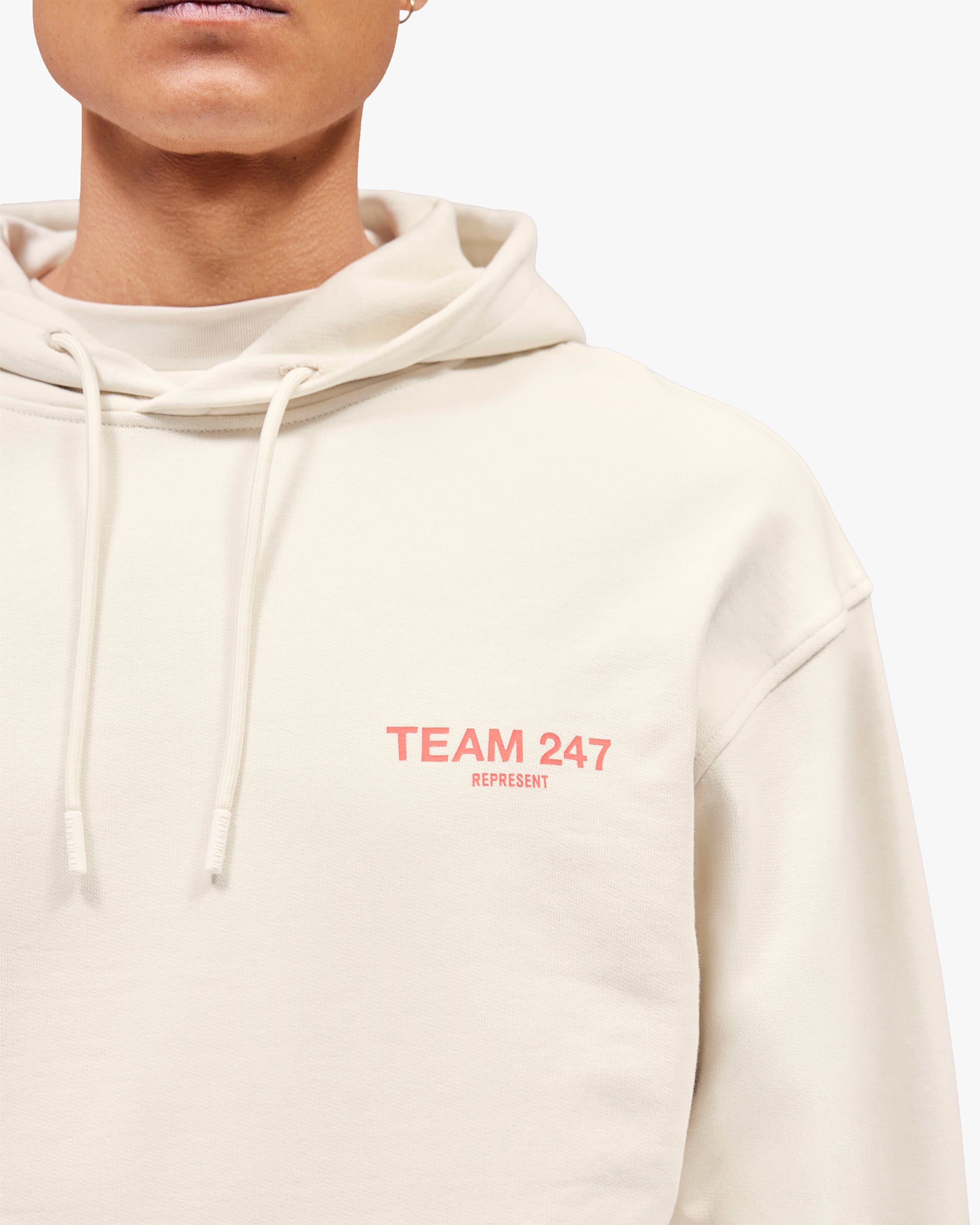 Introducing the Team 247 Oversized Hoodie in Cream for SS26. The ultimate warm-up layer for outdoor workouts, on the way to the gym, or whilst priming your body to train. With an oversized fit as well as a ribbed hem and cuffs, the hoodie provides unparalleled comfort whatever the endeavour. Finished with Team 247 branding to the chest and back, with tonal drawcords to the hood for an adjustable fit.